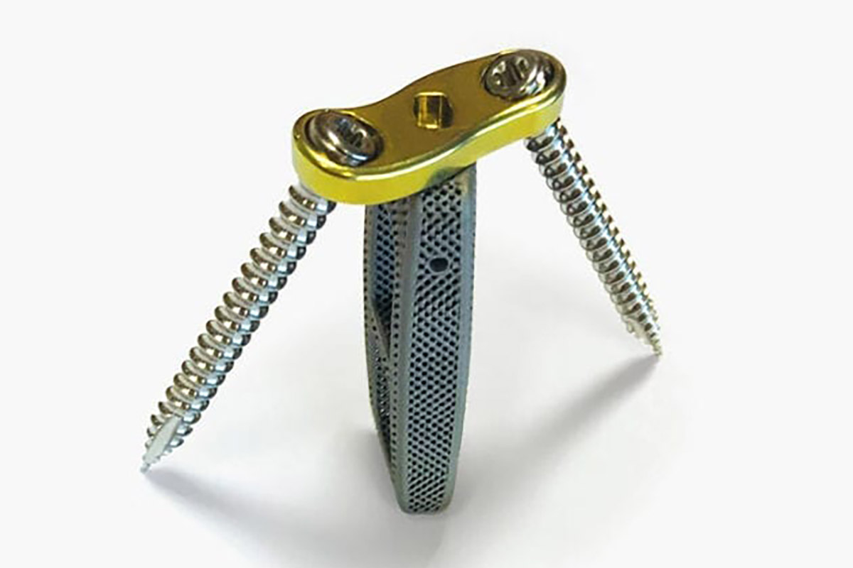 The lattice porous structure provides possibe bone in- and on-growth, soft bone contact and medical imaging visibility.